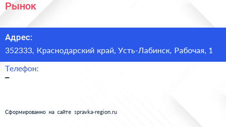 Рынок по адресу 352333, Краснодарский край, Усть-Лабинск, Рабочая, 1 в дальнейшем Организация, размещена в следующих категориях: