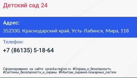 Детский сад №24 по адресу 352330, Краснодарский край, Усть-Лабинск, Мира, 118 в дальнейшем Организация, размещена в следующих категориях: