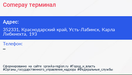 Comepay, терминал по адресу 352331, Краснодарский край, Усть-Лабинск, Карла Либкнехта, 193 в дальнейшем Организация, размещена в следующих категориях: