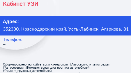 Кабинет УЗИ по адресу 352330, Краснодарский край, Усть-Лабинск, Агаркова, 81 в дальнейшем Организация, размещена в следующих категориях: