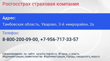 Росгосстрах, страховая компания по адресу Тамбовская область, Уварово, 3-й микрорайон, 2а в дальнейшем Организация, размещена в следующих категориях: