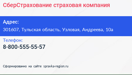 СберСтрахование, страховая компания по адресу 301607, Тульская область, Узловая, Андреева, 10а в дальнейшем Организация, размещена в следующих категориях: