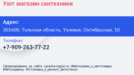 Уют, магазин сантехники по адресу 301600, Тульская область, Узловая, Октябрьская, 10 в дальнейшем Организация, размещена в следующих категориях: