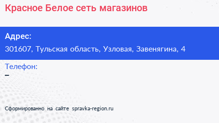 Красное & Белое, сеть магазинов по адресу 301607, Тульская область, Узловая, Завенягина, 4 в дальнейшем Организация, размещена в следующих категориях: