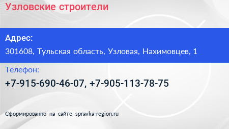 Узловские строители по адресу 301608, Тульская область, Узловая, Нахимовцев, 1 в дальнейшем Организация, размещена в следующих категориях: