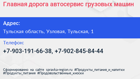 Главная дорога, автосервис грузовых машин по адресу Тульская область, Узловая, Тульская, 1 в дальнейшем Организация, размещена в следующих категориях: