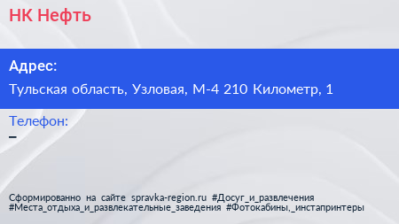 НК Нефть по адресу Тульская область, Узловая, М-4 210 Километр, 1 в дальнейшем Организация, размещена в следующих категориях: