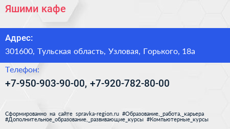 Яшими, кафе по адресу 301600, Тульская область, Узловая, Горького, 18а в дальнейшем Организация, размещена в следующих категориях: