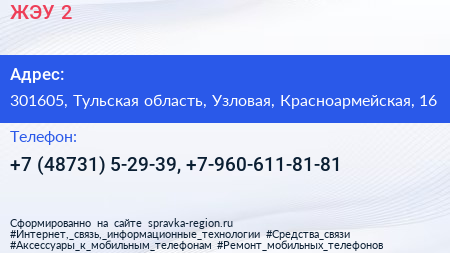 ЖЭУ №2 по адресу 301605, Тульская область, Узловая, Красноармейская, 16 в дальнейшем Организация, размещена в следующих категориях: