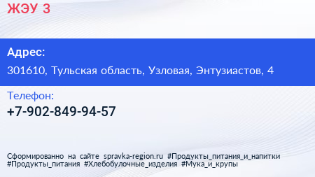 ЖЭУ №3 по адресу 301610, Тульская область, Узловая, Энтузиастов, 4 в дальнейшем Организация, размещена в следующих категориях: