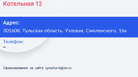 Котельная №12 по адресу 301608, Тульская область, Узловая, Смоленского, 16а в дальнейшем Организация, размещена в следующих категориях: