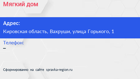 Мягкий дом по адресу Кировская область, Вахруши, улица Горького, 1 в дальнейшем Организация, размещена в следующих категориях:
