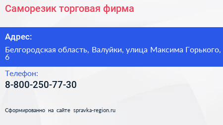 Саморезик, торговая фирма по адресу Белгородская область, Валуйки, улица Максима Горького, 6 в дальнейшем Организация, размещена в следующих категориях: