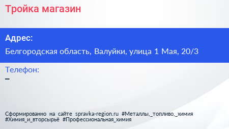 Тройка, магазин по адресу Белгородская область, Валуйки, улица 1 Мая, 20/3 в дальнейшем Организация, размещена в следующих категориях: