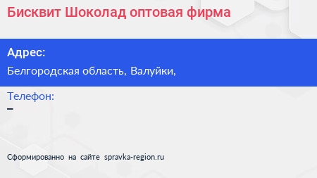 Бисквит-Шоколад, оптовая фирма по адресу Белгородская область, Валуйки, в дальнейшем Организация, размещена в следующих категориях: