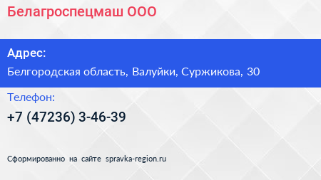 Белагроспецмаш, ООО по адресу Белгородская область, Валуйки, Суржикова, 30 в дальнейшем Организация, размещена в следующих категориях: