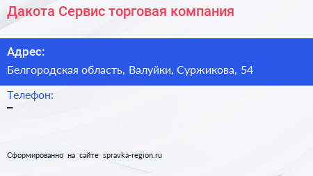 Дакота Сервис, торговая компания по адресу Белгородская область, Валуйки, Суржикова, 54 в дальнейшем Организация, размещена в следующих категориях: