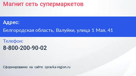 Магнит, сеть супермаркетов по адресу Белгородская область, Валуйки, улица 1 Мая, 41 в дальнейшем Организация, размещена в следующих категориях: