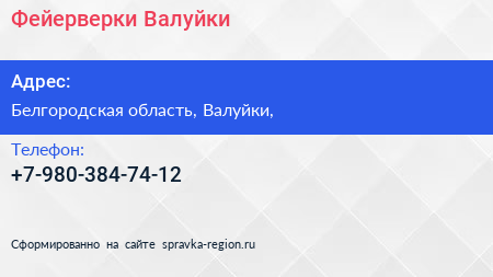 Фейерверки Валуйки по адресу Белгородская область, Валуйки, в дальнейшем Организация, размещена в следующих категориях: