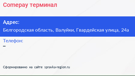Comepay, терминал по адресу Белгородская область, Валуйки, Гвардейская улица, 24а в дальнейшем Организация, размещена в следующих категориях:
