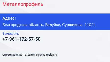Металлопрофиль по адресу Белгородская область, Валуйки, Суржикова, 110/1 в дальнейшем Организация, размещена в следующих категориях: