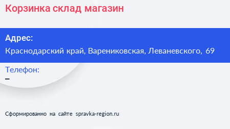 Корзинка, склад-магазин по адресу Краснодарский край, Варениковская, Леваневского, 69 в дальнейшем Организация, размещена в следующих категориях: