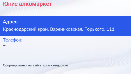 Юнис, алкомаркет по адресу Краснодарский край, Варениковская, Горького, 111 в дальнейшем Организация, размещена в следующих категориях: