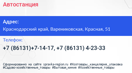 Автостанция по адресу Краснодарский край, Варениковская, Красная, 51 в дальнейшем Организация, размещена в следующих категориях: