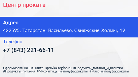Центр проката по адресу 422595, Татарстан, Васильево, Свияжские Холмы, 19 в дальнейшем Организация, размещена в следующих категориях: