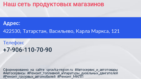 Наш, сеть продуктовых магазинов по адресу 422530, Татарстан, Васильево, Карла Маркса, 121 в дальнейшем Организация, размещена в следующих категориях: