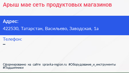Арыш мае, сеть продуктовых магазинов по адресу 422530, Татарстан, Васильево, Заводская, 1а в дальнейшем Организация, размещена в следующих категориях: