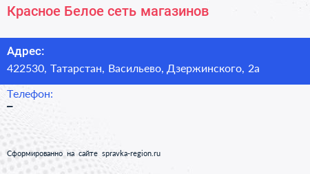 Красное & Белое, сеть магазинов по адресу 422530, Татарстан, Васильево, Дзержинского, 2а в дальнейшем Организация, размещена в следующих категориях: