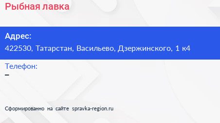 Рыбная лавка по адресу 422530, Татарстан, Васильево, Дзержинского, 1 к4 в дальнейшем Организация, размещена в следующих категориях: