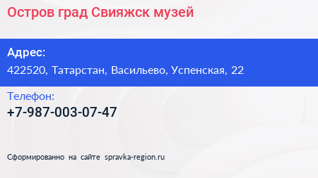 Остров-град Свияжск, музей по адресу 422520, Татарстан, Васильево, Успенская, 22 в дальнейшем Организация, размещена в следующих категориях: