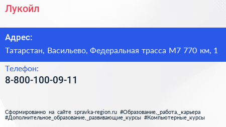 Лукойл по адресу Татарстан, Васильево, Федеральная трасса М7 770 км, 1 в дальнейшем Организация, размещена в следующих категориях: