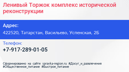 Ленивый Торжок, комплекс исторической реконструкции по адресу 422520, Татарстан, Васильево, Успенская, 2Б в дальнейшем Организация, размещена в следующих категориях: