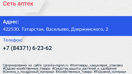 Сеть аптек по адресу 422530, Татарстан, Васильево, Дзержинского, 2 в дальнейшем Организация, размещена в следующих категориях: