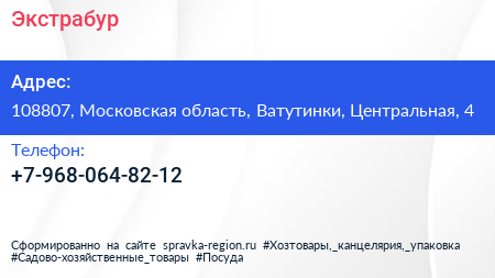 Экстрабур по адресу 108807, Московская область, Ватутинки, Центральная, 4 в дальнейшем Организация, размещена в следующих категориях: