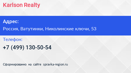 Karlson Realty по адресу Пятёрочка, 53, улица Николинские Ключи, Жилой комплекс «Ново-Никольское», Филимонковский район, Ивановское, Москва, Центральный федеральный округ, 108808, Россия в дальнейшем Организация, размещена в следующих категориях:
