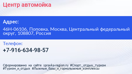 Центр, автомойка по адресу 46Н-06106, Поповка, Москва, Центральный федеральный округ, 108807, Россия в дальнейшем Организация, размещена в следующих категориях: