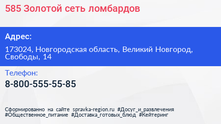 585*Золотой, сеть ломбардов по адресу 173024, Новгородская область, Великий Новгород, Свободы, 14 в дальнейшем Организация, размещена в следующих категориях: