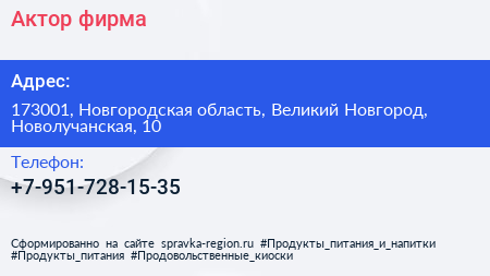 Актор, фирма по адресу 173001, Новгородская область, Великий Новгород, Новолучанская, 10 в дальнейшем Организация, размещена в следующих категориях: