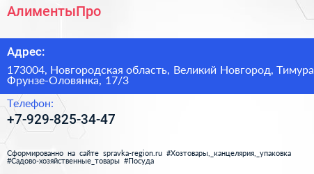 АлиментыПро по адресу 173004, Новгородская область, Великий Новгород, Тимура Фрунзе-Оловянка, 17/3 в дальнейшем Организация, размещена в следующих категориях: