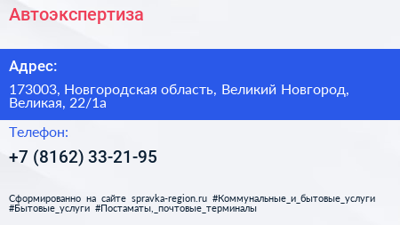 Автоэкспертиза по адресу 173003, Новгородская область, Великий Новгород, Великая, 22/1а в дальнейшем Организация, размещена в следующих категориях: