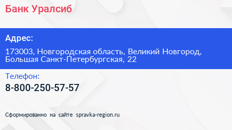 Банк Уралсиб по адресу 173003, Новгородская область, Великий Новгород, Большая Санкт-Петербургская, 22 в дальнейшем Организация, размещена в следующих категориях:
