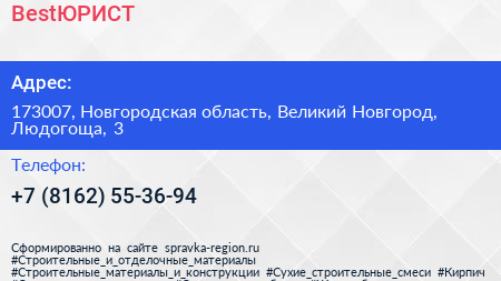 BestЮРИСТ по адресу 173007, Новгородская область, Великий Новгород, Людогоща, 3 в дальнейшем Организация, размещена в следующих категориях:
