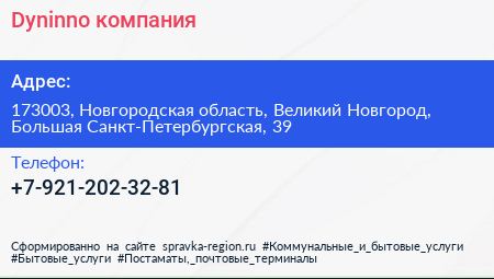 Dyninno, компания по адресу 173003, Новгородская область, Великий Новгород, Большая Санкт-Петербургская, 39 в дальнейшем Организация, размещена в следующих категориях: