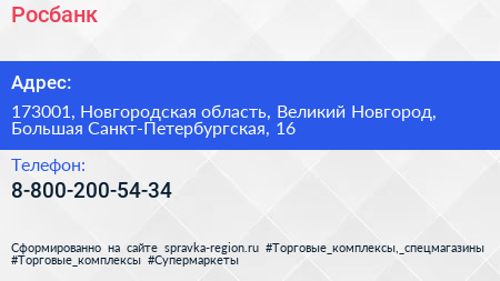 Росбанк по адресу 173001, Новгородская область, Великий Новгород, Большая Санкт-Петербургская, 16 в дальнейшем Организация, размещена в следующих категориях: