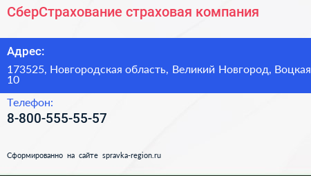 СберСтрахование, страховая компания по адресу 173525, Новгородская область, Великий Новгород, Воцкая, 10 в дальнейшем Организация, размещена в следующих категориях: