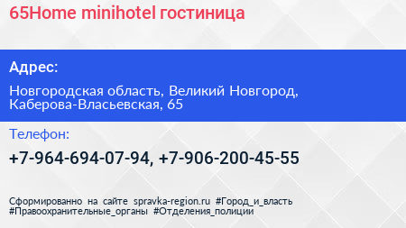 65Home minihotel, гостиница по адресу Новгородская область, Великий Новгород, Каберова-Власьевская, 65 в дальнейшем Организация, размещена в следующих категориях: